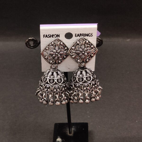 Trending Silver oxidized Jhumka with Red beads